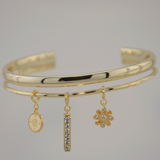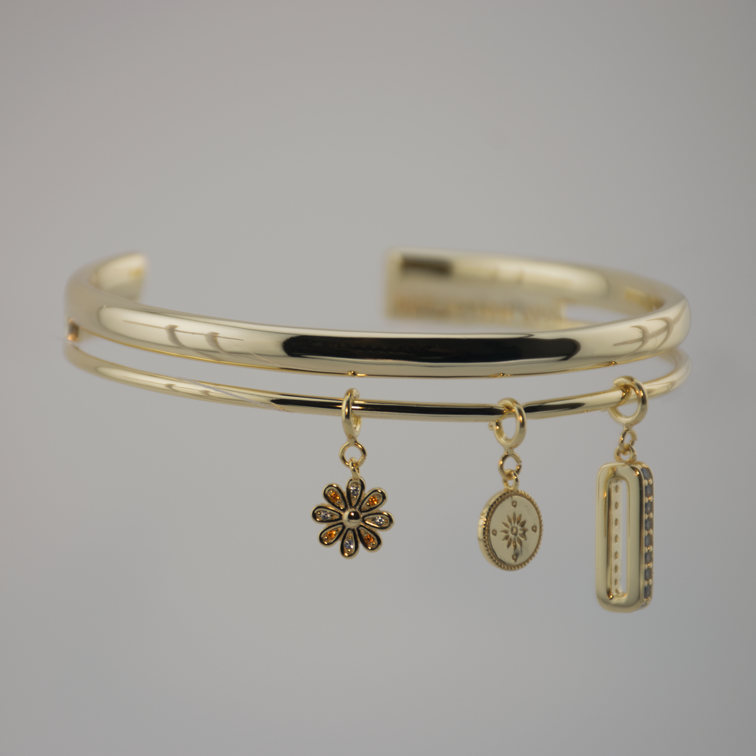 Like every journey, every person's story is unique. This inspiration led to the creation of the "Personal Reflection" series, a collection that marries timeless elegance with personal significance. Each bracelet in this series is crafted from 925 silver, coated in lush gold, and features interchangeable charms that allow the wearer to customize their piece to reflect personal milestones, memories, or dreams.