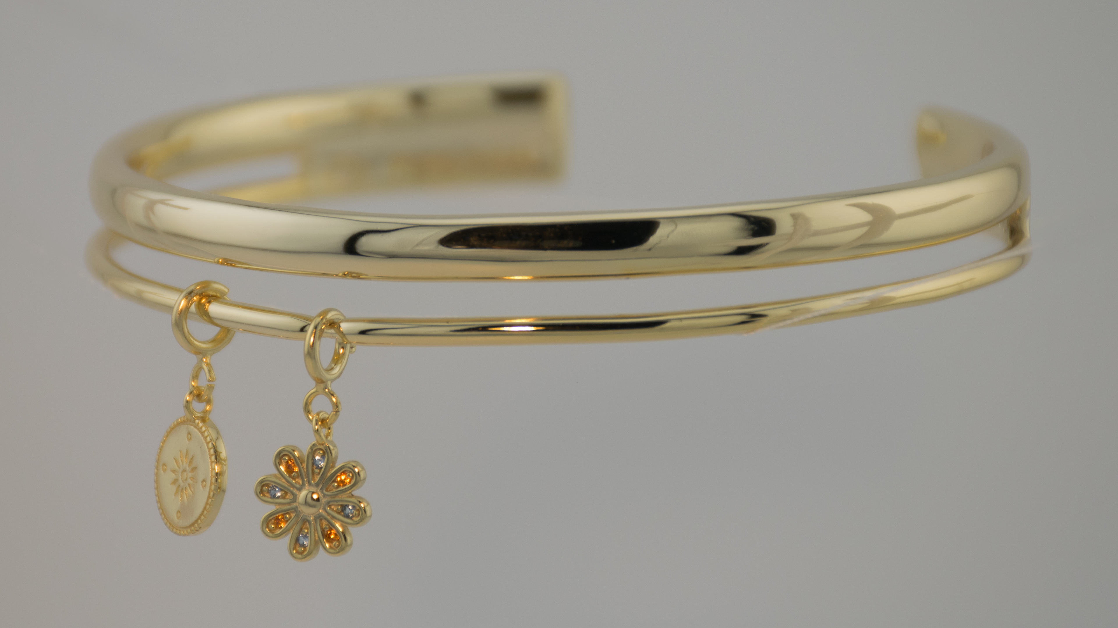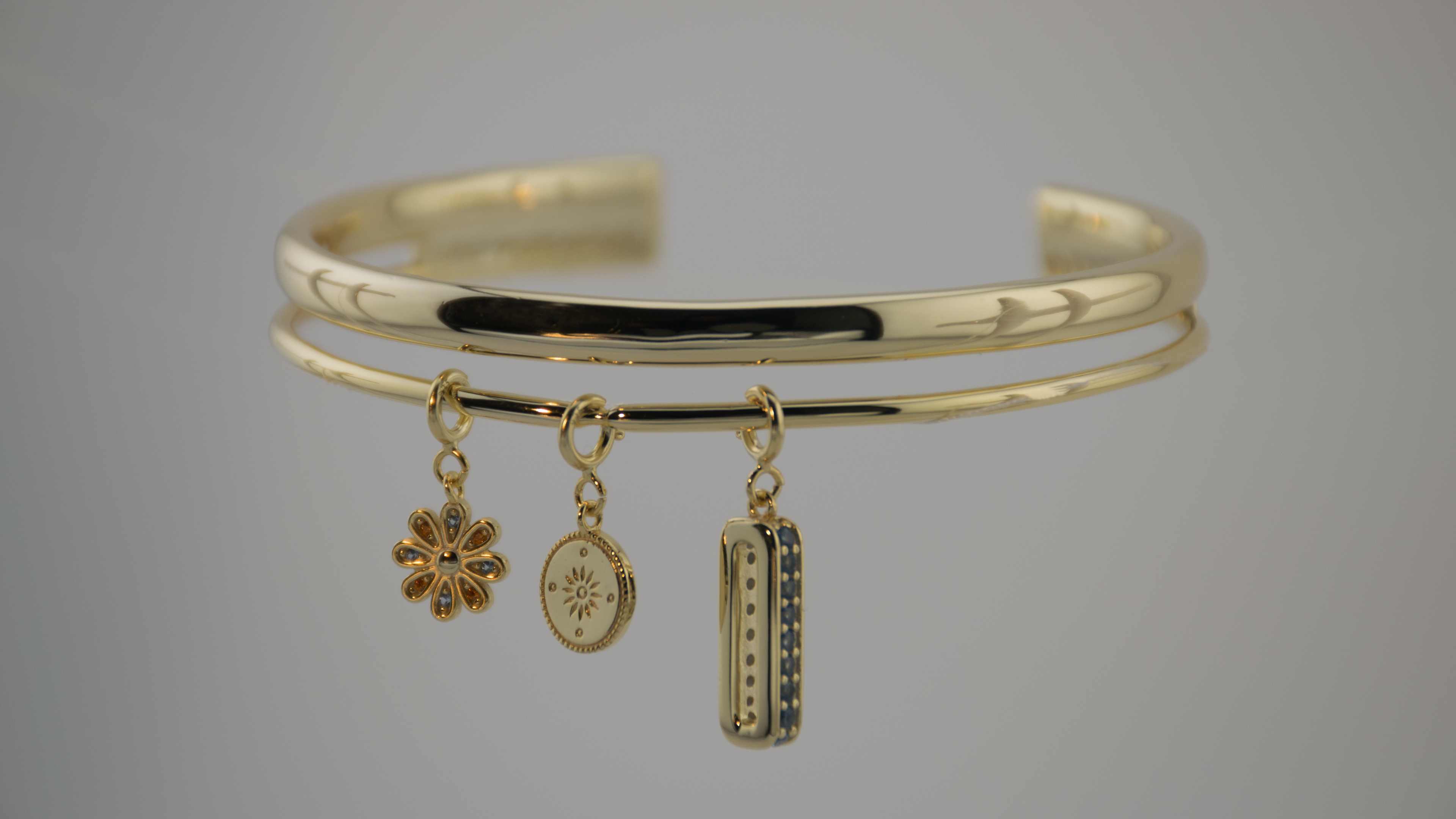 Like every journey, every person's story is unique. This inspiration led to the creation of the "Personal Reflection" series, a collection that marries timeless elegance with personal significance. Each bracelet in this series is crafted from 925 silver, coated in lush gold, and features interchangeable charms that allow the wearer to customize their piece to reflect personal milestones, memories, or dreams.