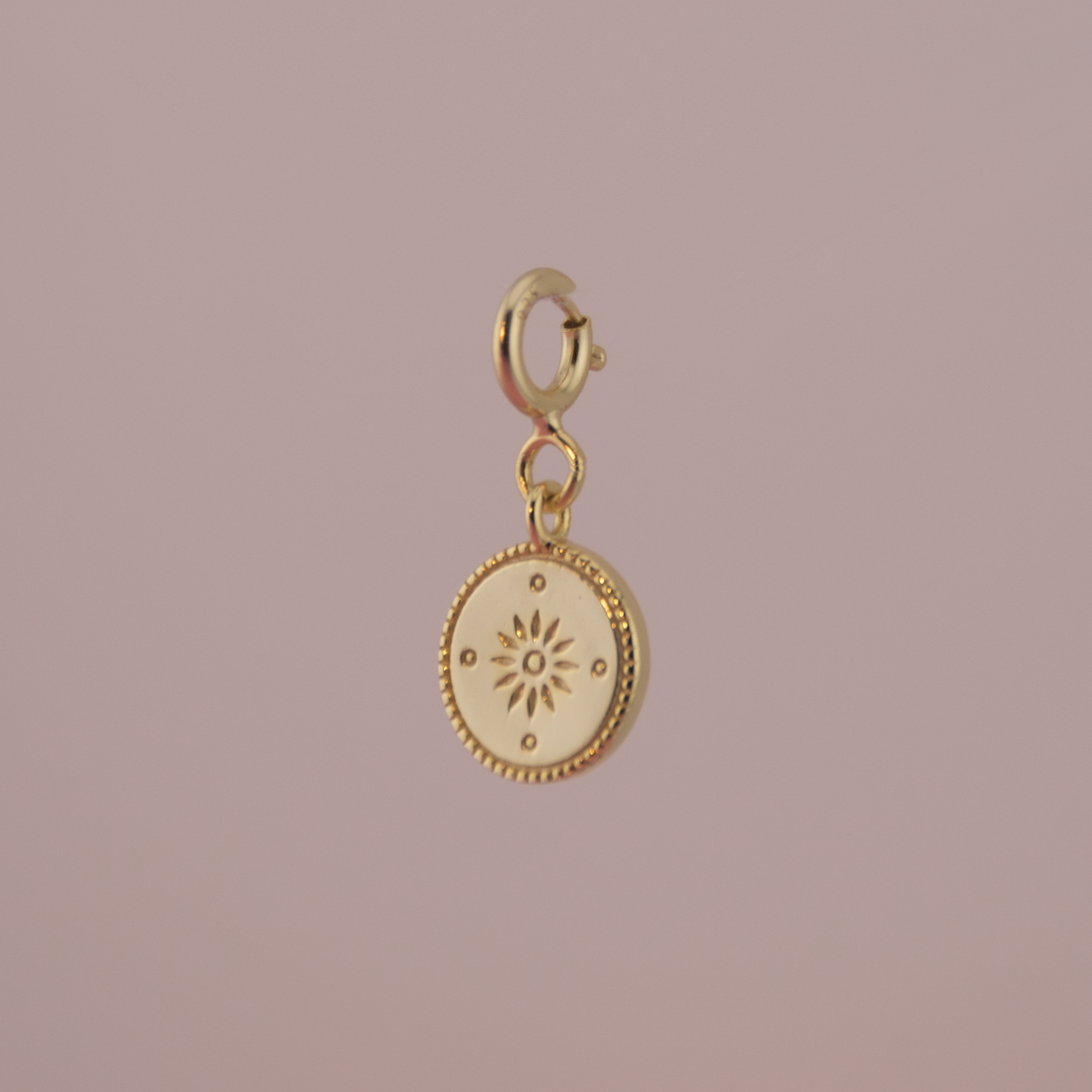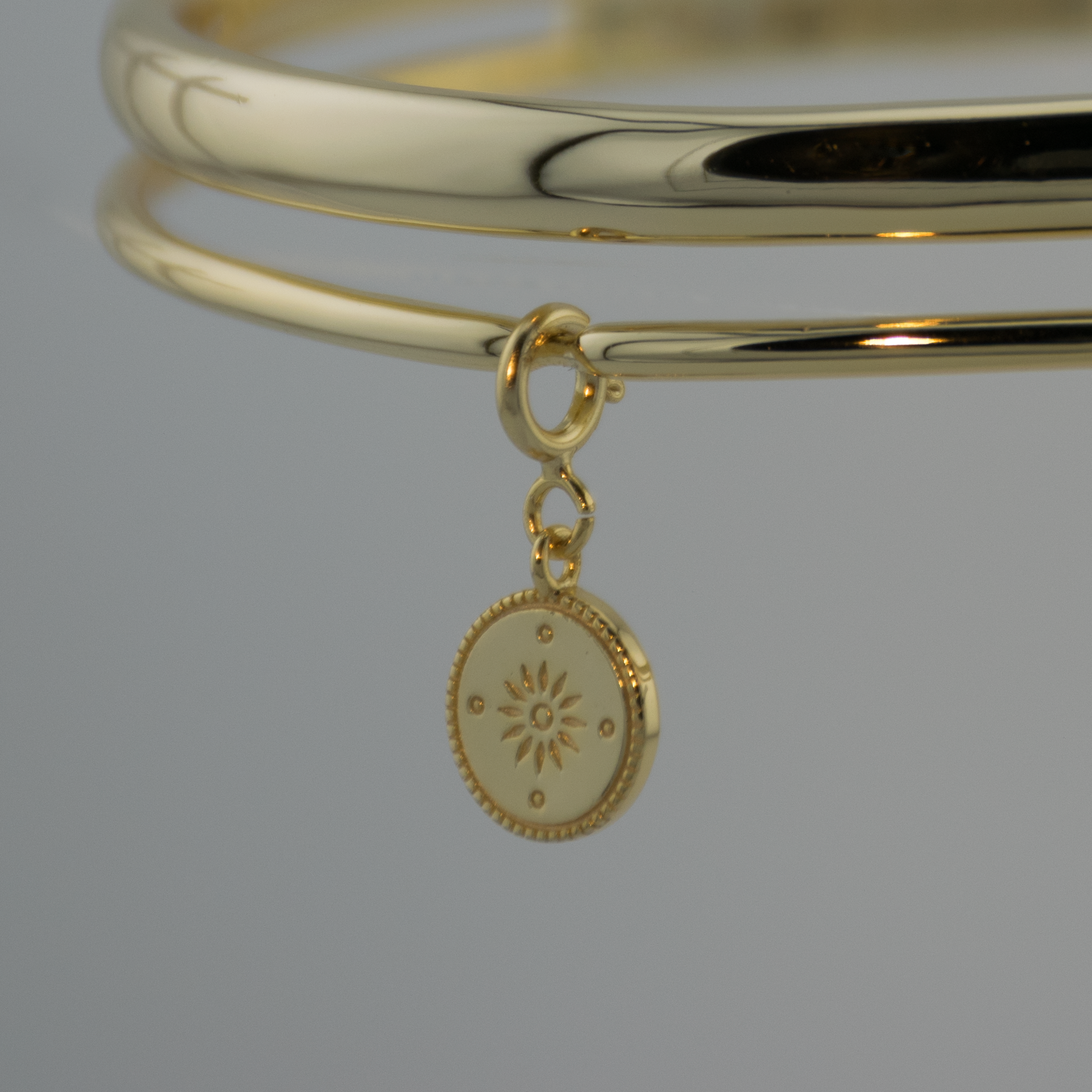 Illuminate your life with our Radiant Sun Charm, a symbol of vitality and eternal energy. Expertly crafted from premium 925 sterling silver and adorned with a gleaming 14K gold plating, this charm captures the enduring power and brightness of the sun. It represents life, positivity, and the clear light that guides through darkness, symbolizing the force that energizes and revitalizes our spirits. This charm is perfect for those who inspire others with their energy and leadership, making it an excellent gift to honor personal growth, guidance, or to celebrate someone who lights up your life. Add this luminous piece to your collection to carry a touch of sunshine with you every day.